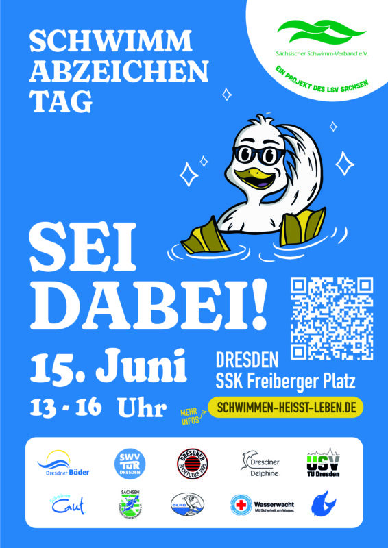 Vom 09. bis 16 Juni 2024 findet deutschlandweit der SCHWIMMABZEICHENTAG als Initiative für mehr Sicherheit am, im und auf dem Wasser, statt. Mit diesem Aktionstag will der Deutsche Schwimm-Verband gemeinsam mit anderen wassersporttreibenden Verbänden das Absolvieren der verschiedenen Schwimmabzeichen anbieten. In Dresden wird die Aktion am 15. Juni 2024 von 13-16 Uhr in enger Zusammenarbeit mit der “Dresdner Bäder […]